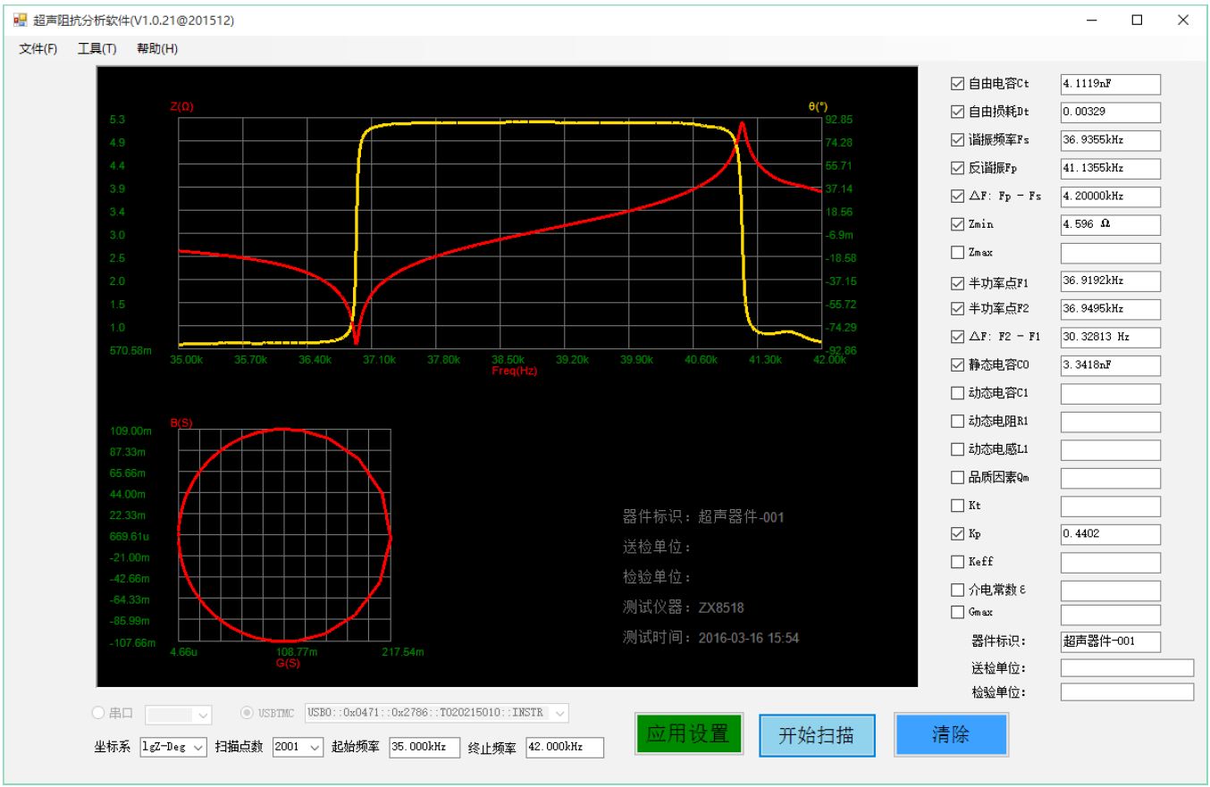 ZX70A/ZX80A系列超聲阻抗分析儀在儀器上就實(shí)現(xiàn)掃描圖形,還可以把儀器上屏幕顯示圖形和測試數(shù)據(jù)直接拷貝到U盤。同時儀器自帶電腦軟件界面,標(biāo)配版無需另行購買。