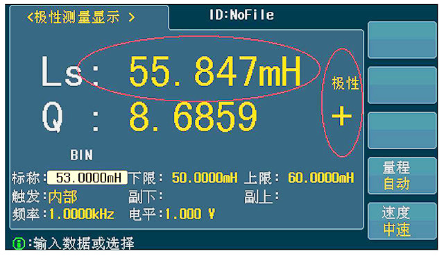 在極性測(cè)量界面,可設(shè)定:標(biāo)稱(chēng)值,Ls 下限值,Ls 上限值,Q 下限值,Q 上限值,