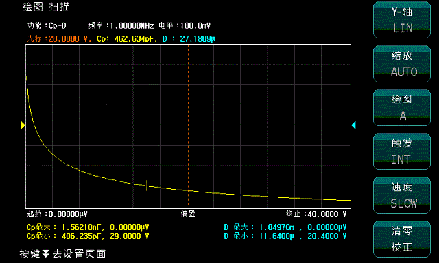 主要用于測(cè)試半導(dǎo)體器件PN結(jié)的勢(shì)壘電容在不同偏壓(V)下的電容量(C)。ZX38A-CV半導(dǎo)體C-V特性測(cè)試儀除了可以連接電腦上位機(jī)軟件掃描分析功能外,還提供在儀器大屏液晶顯示器上直接顯示C-V掃描曲線分析功能。這樣客戶不再需要為每臺(tái)儀器配置一臺(tái)電腦。這種方式既保證了測(cè)試效率,又降低了測(cè)試成本、還方便客戶在生產(chǎn)線上使用。還可以把儀器屏幕上顯示圖形和測(cè)試數(shù)據(jù)直接拷貝到U盤。