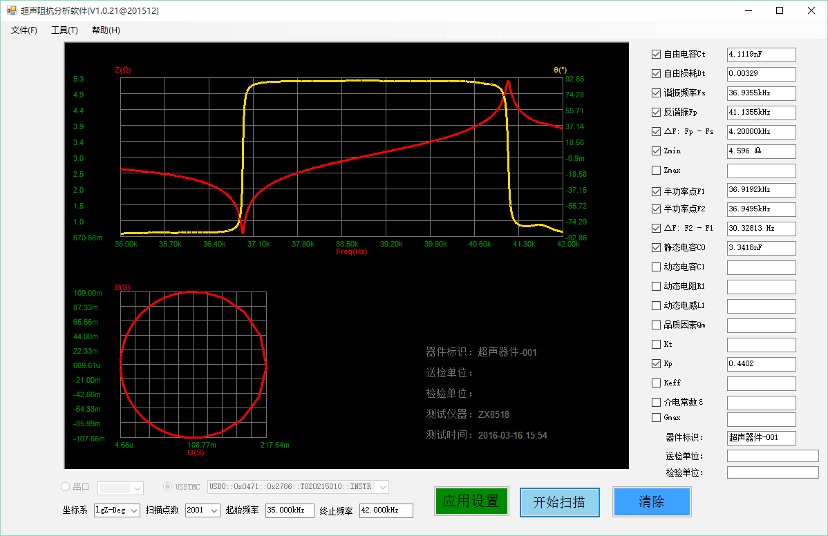 ZX70A/ZX80A系列超聲阻抗分析儀在儀器上就實(shí)現(xiàn)掃描圖形,還可以把儀器上屏幕顯示圖形和測試數(shù)據(jù)直接拷貝到U盤。同時儀器自帶電腦軟件界面,標(biāo)配版無需另行購買。